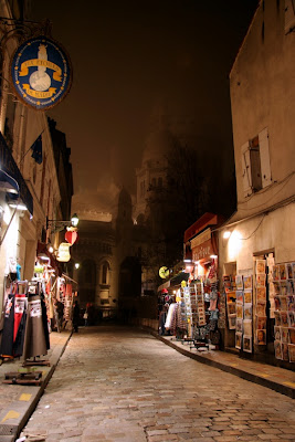 Le 25 décembre, après le chapon, rien ne vaut une petite marche disgestive. Quelques clichés brouillasseux de la butte. Pour donner une première idée, voici le sacré coeur dont le sommet est perdu dans les nuages.