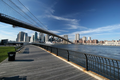 Le pont de Brooklyn (encore !), mais cette fois depuis un autre spot : coté Brooklyn entre le pont du meme nom et le Manhattan bridge. Un petite promenade en bois et des courbes amplifiées par le grand angle.
