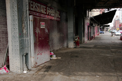 Une visite à Meat Packing, ancien quartier des halles à viandes dans le sud Manhattan (au dessus du West Village). Les magasins branchés, les stylistes et les lofts ont peu à peu remplacé les entrepôts. Reste un bar glauque et quelques vieilles poubelles, mais il y a fort à parier que tout ca sera clinquant et hors et de prix dans quelques années (si ca ne l'est pas déjà)...