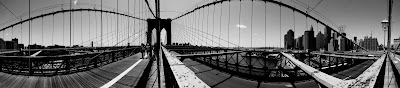 Commencons par une vue sur Manhattan : à gauche le financial district, à droite l'empire state building, au milieu une pile du pont (cliquez pour aggrandir) :