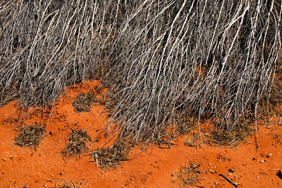 Par exemple, Uluru qui dépasse à peine de la brousaille :