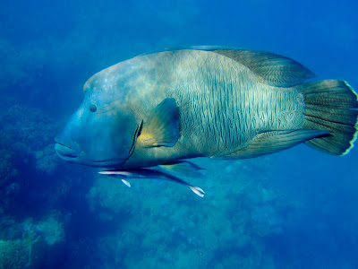 Le gros poisson, ca serait pas un mérou ? Il me semble que la peau est assez typique :)