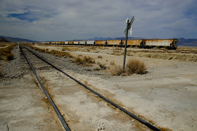 Une voie de chemin de fer qui a pas du servir depuis longtemps, pres de Ridgedrest (bled paume de l'interieur Californien)