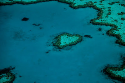 Pour continuer de liquider l'Australie, voici les photos de la Grande Barriere de Corail vue d'avion. Ce jour-la, le temps etait tres nuageux , et la lumiere etait tres blanche. Il a fallu corriger un peu le tir avec les outils dont nous disposons.